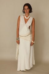 The Samaya Dress is a timeless embodiment of elegance and comfort. Crafted from high-quality cotton, this full-length wrap dress combines an earthy bohemian spirit with refined sophistication. Its sleeveless silhouette and flattering crossover design hug the body gently, offering a breathable and flowing fit that moves gracefully with you. Whether worn barefoot on the beach or paired with statement accessories for a sunset dinner, the Lontar Dress is your effortless go-to for elevated everyday dressing.