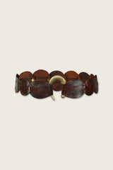 The Assola Belt - A hand-weaved leather belt which features a beautiful gold metal buckle that can slide into the weavings of the belt making it adjustable.