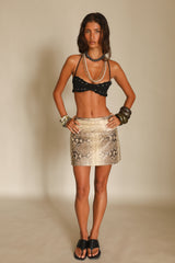 Crafted from genuine, sustainably sourced python, the Serpent Skirt brings luxury and edge into perfect balance. Featuring natural tones of beige and black with striking scale texture, this mini skirt is finished with an integrated belt panel that sculpts the waist. Every piece is one-of-a-kind due to the natural variation in the leather — a timeless statement made to last.