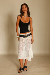 The Lida Top is a fitted black tank crafted from a soft, stretchy cotton blend for a flattering, second-skin feel. The standout feature: ceramic beads hand-strung along the halter neck ties — adding texture, weight, and a subtle statement. The minimal shape balances elevated detail with easy wearability, perfect on its own or layered under sheer or open knits.